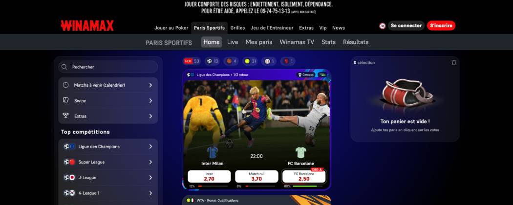 - Jeux de table : blackjack, roulette, baccarat, poker